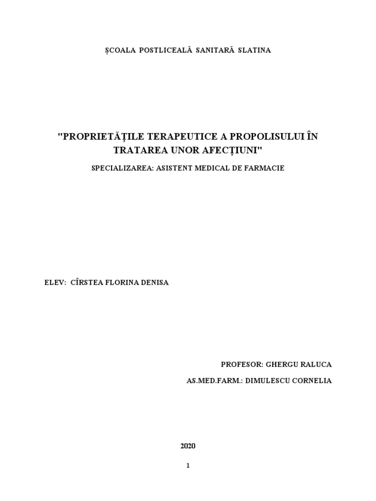 propolisului și a rolului acesteia în terapia modernă.