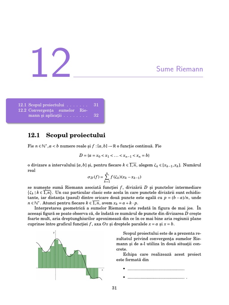 12.2 Convergenţa sumelor Riemann şi aplicaţii