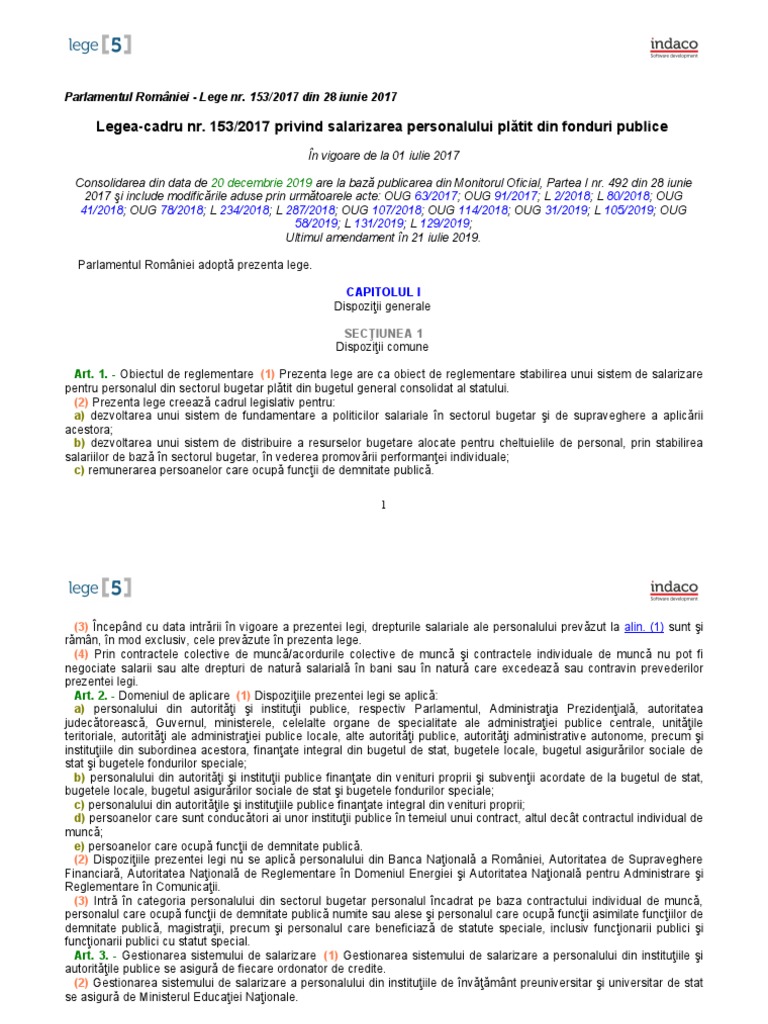 Legea-cadru nr. 153/2017 privind salarizarea personalului plătit din fonduri publice