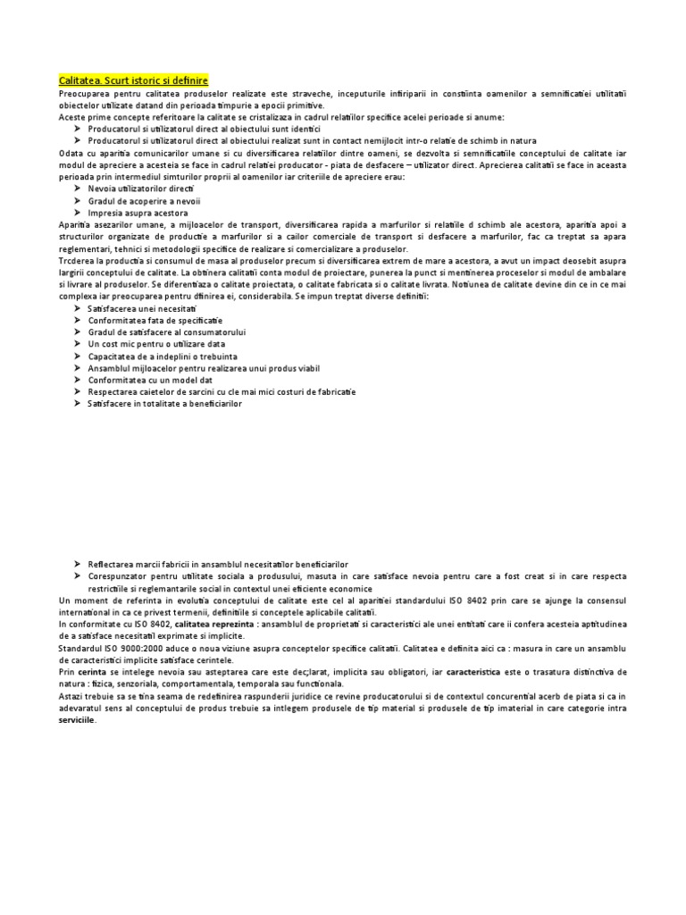 largirii conceptului de calitate. La obtinera calitatii conta modul de proiectare, punerea la punct si mentinerea proceselor si modul de ambalare