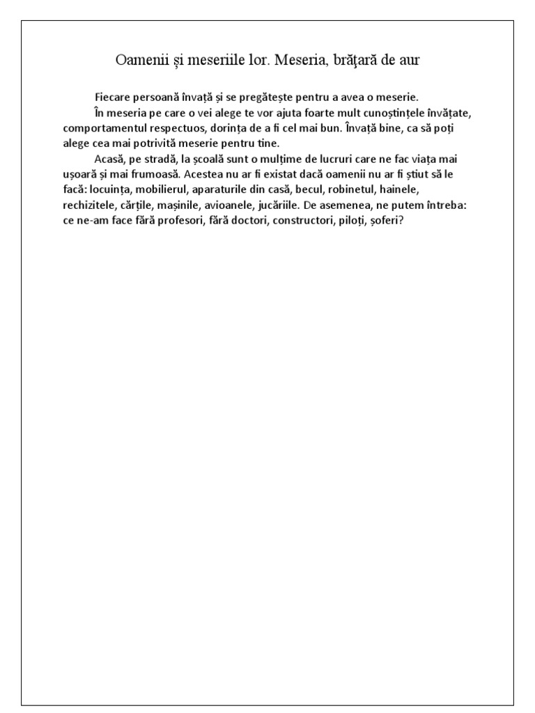 Fiecare persoană învață și se pregătește pentru a avea o meserie.