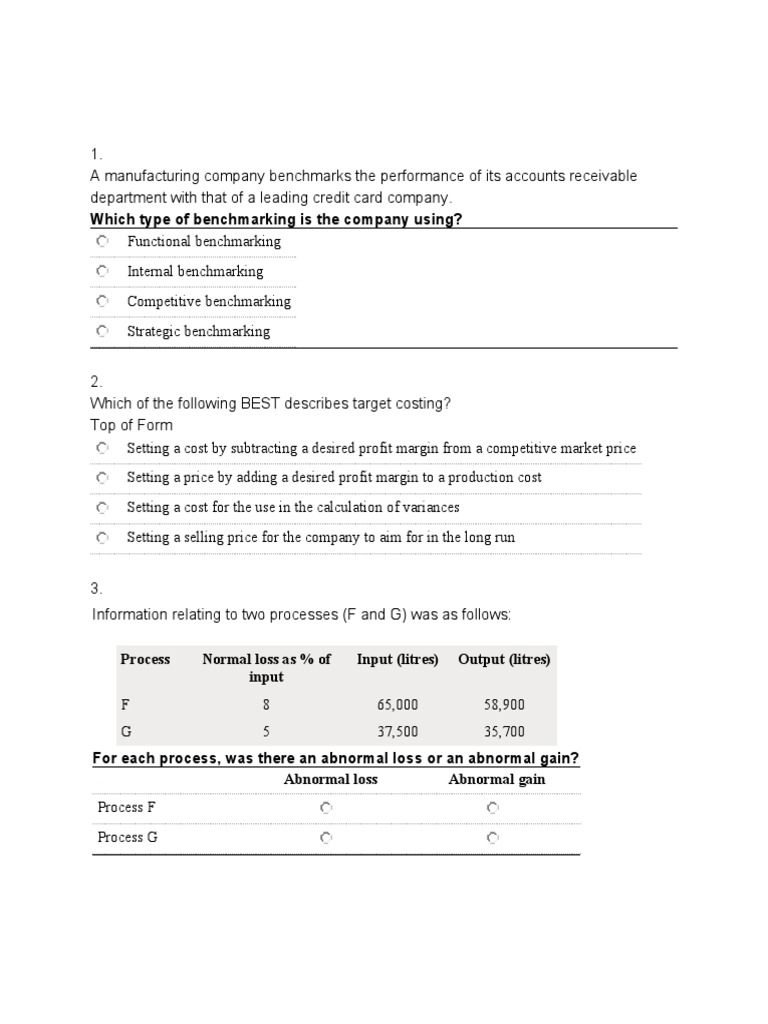 Information relating to two processes (F and G) was as follows:
