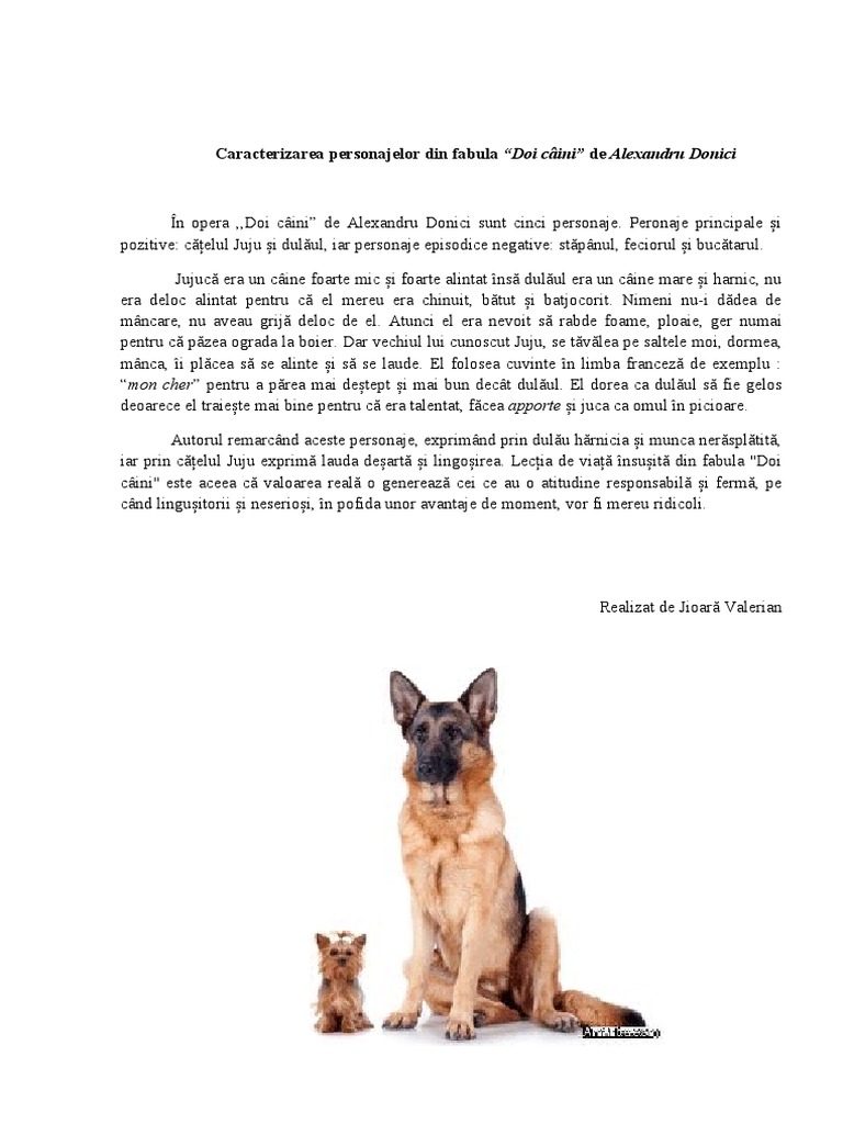 Caracterizarea personajelor din fabula “Doi câini” de Alexandru Donici