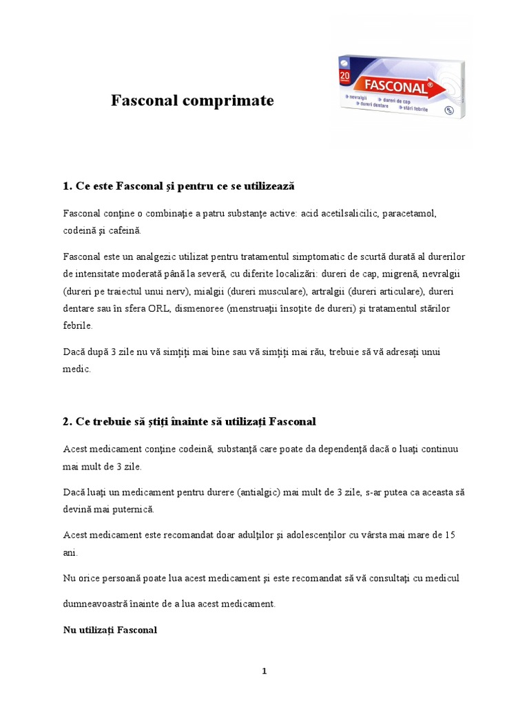 Fasconal este un analgezic utilizat pentru tratamentul simptomatic de scurtă durată al durerilor