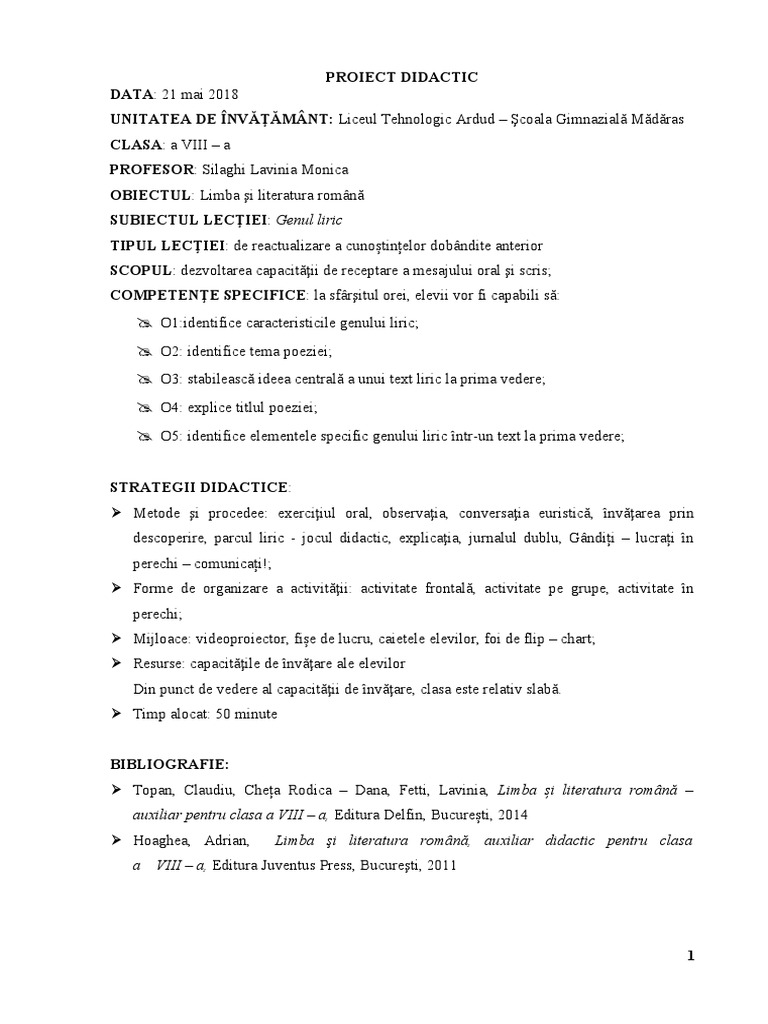 Voi face lectura model a poeziei, (Anexa 3), iar Flori