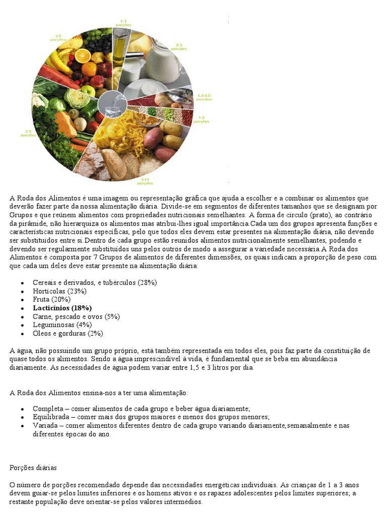 A Roda dos Alimentos é uma imagem ou representação gráfica que ajuda a escolher e a combinar os alimentos que