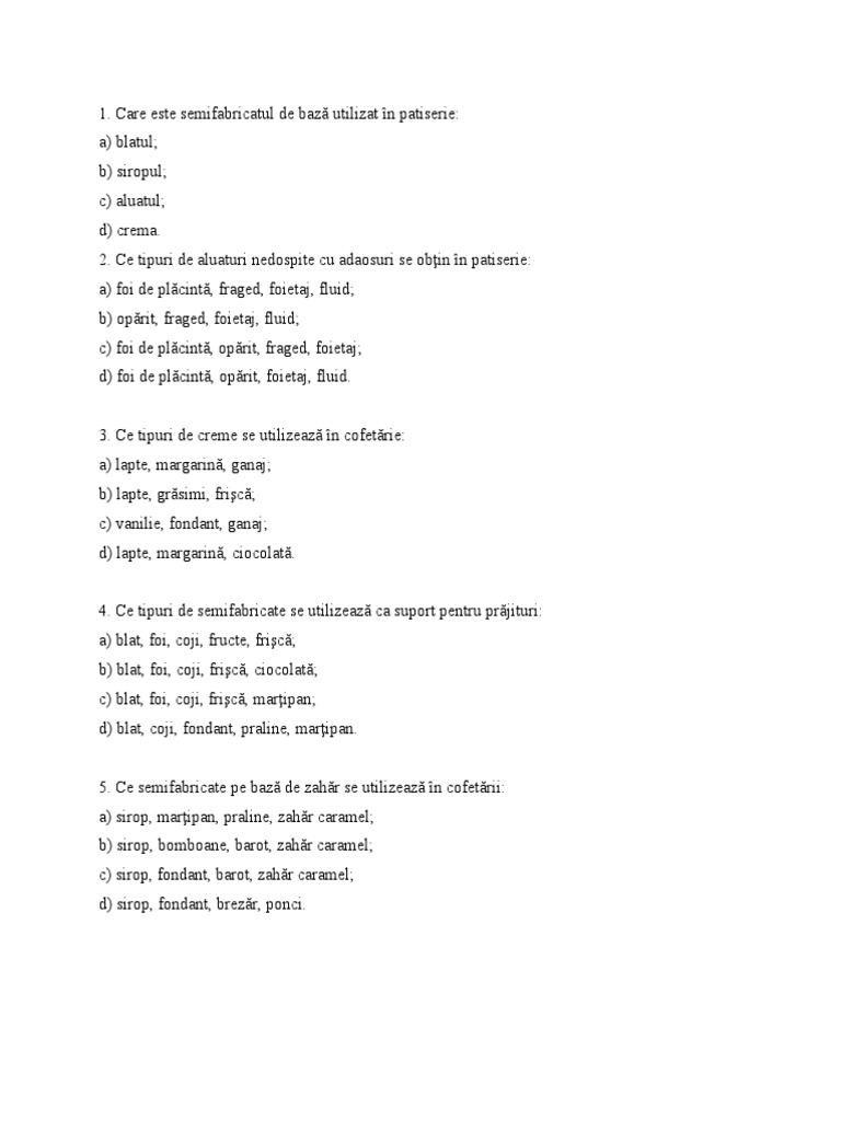 c) blat, foi, coji, frişcă, marţipan;