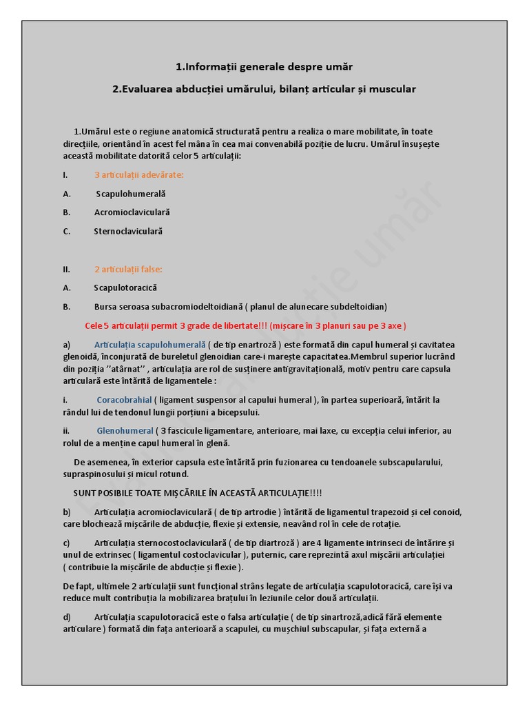 d) Articulația scapulotoracică este o falsa articulație ( de tip sinartroză,adică fără elemente