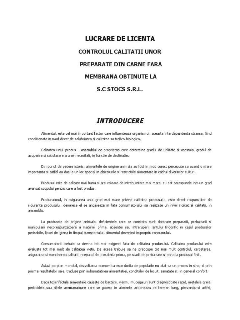 1. S.C. STOCS S.R.L. este o unitate cu profil de industrie alimentara, specializata in obtinerea unor preparate