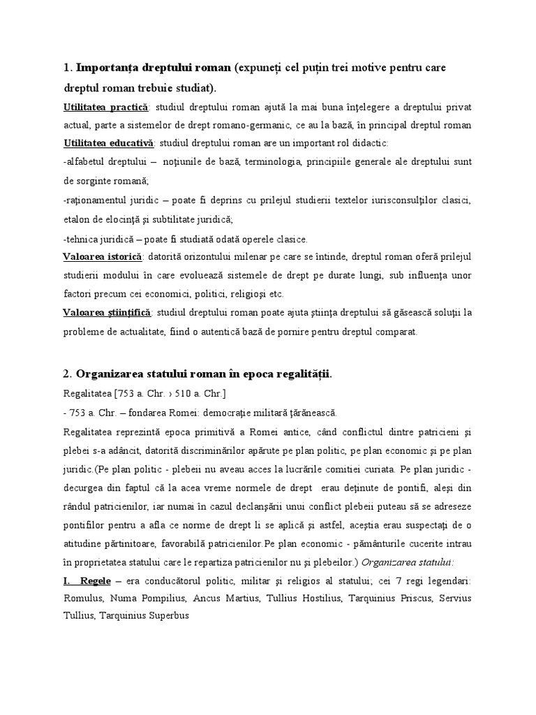 Importanţa dreptului roman (expuneți cel puțin trei motive pentru care