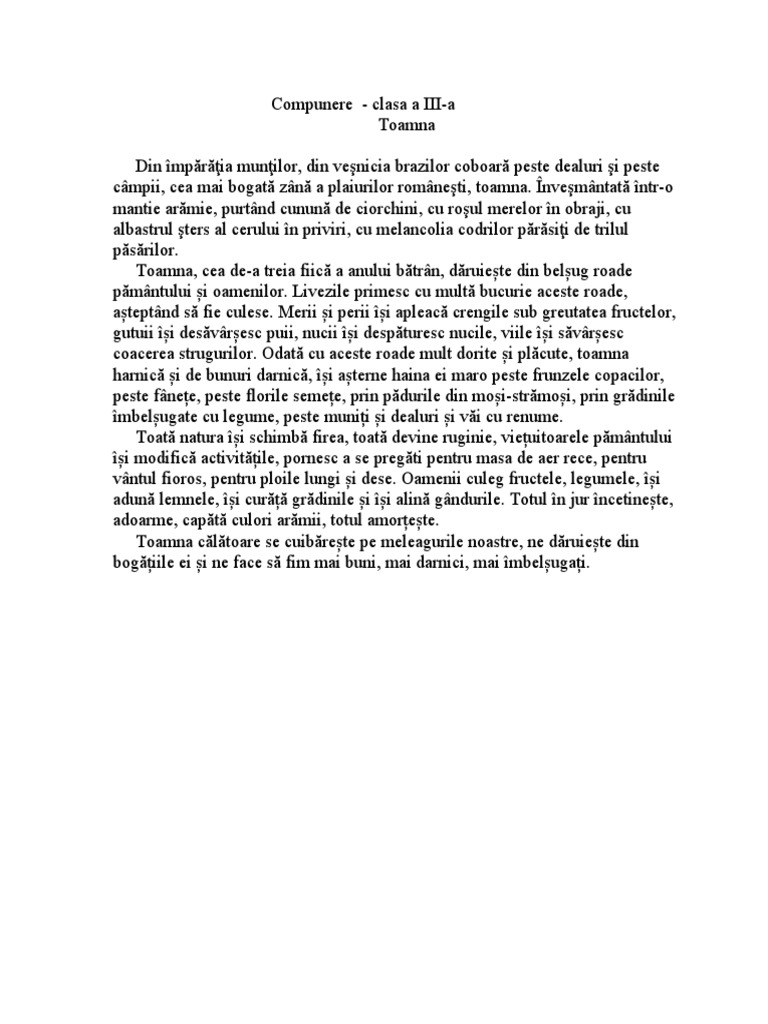 harnică și de bunuri darnică, își așterne haina ei maro peste frunzele copacilor,