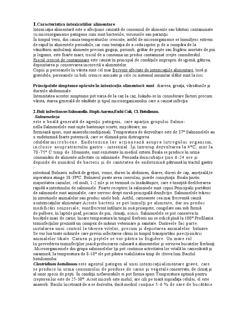 [Link] infectioase:Salmonella. Staph Aureus,Eschi Coli, Cl. Botulinum.