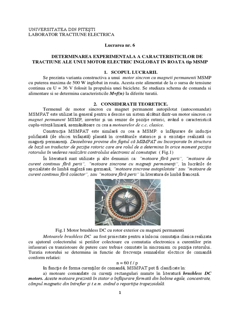 TRACTIUNE ALE UNUI MOTOR ELECTRIC INGLOBAT IN ROATA tip MSMP