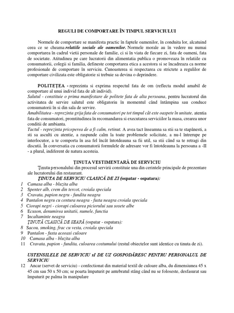 REGULI DE COMPORTARE ÎN TIMPUL SERVICIULUI