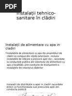 exterioare de distributie a apei, instalatii interioare de alimentare cu apa , instalatii