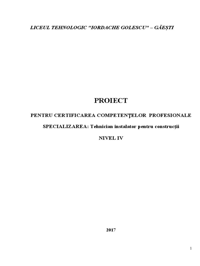 SPECIALIZAREA: Tehnician instalator pentru construcţii