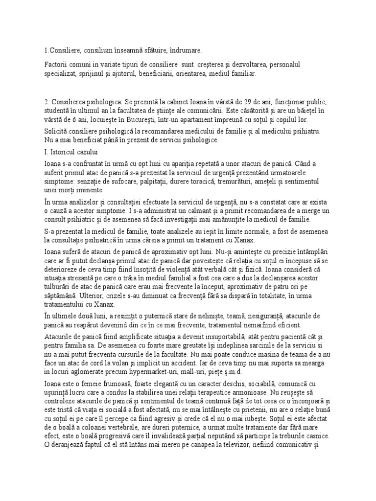 La sfatul unei colege de servici, se prezinta la cabinetul unui consilier psihologic. Subiectul