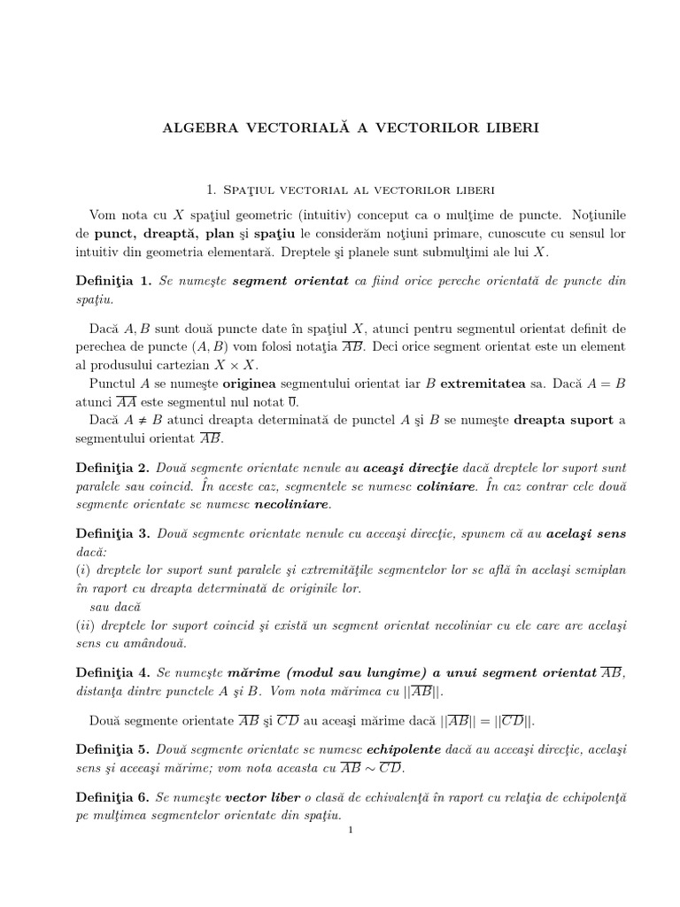 Definiţia 6. Se numeşte vector liber o clasă de echivalenţă ı̂n raport cu relaţia de echipolenţă
