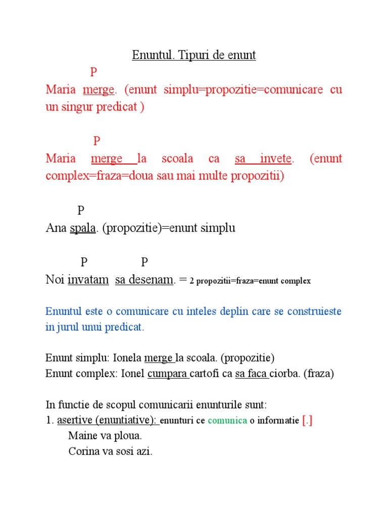 1. asertive (enuntiative): enunturi ce comunica o informatie [.]