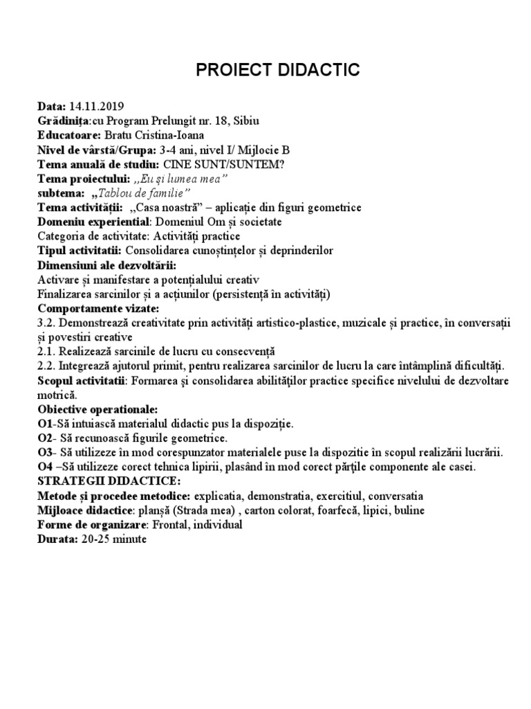 Nivel de vârstă/Grupa: 3-4 ani, nivel I/ Mijlocie B