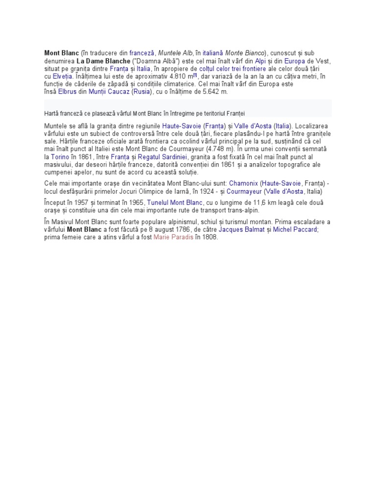 vârfului Mont Blanc a fost făcută pe 8 august 1786, de către Jacques Balmat și Michel Paccard;
