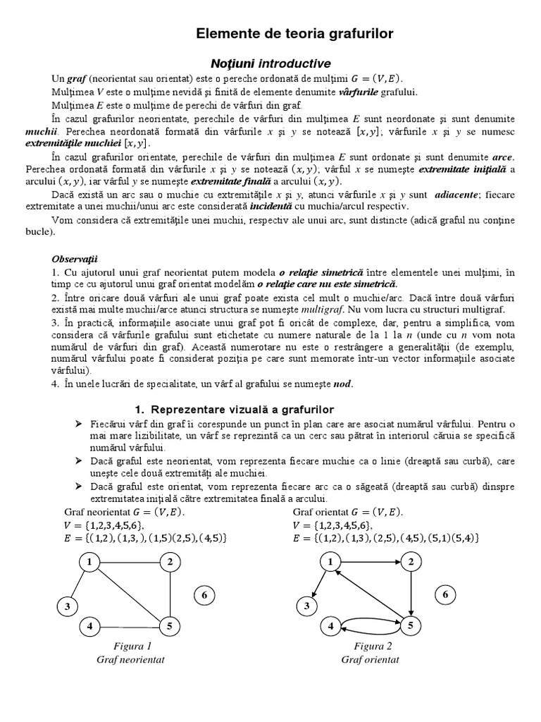 1. Cu ajutorul unui graf neorientat putem modela o relaţie simetrică între elementele unei mulţimi, în