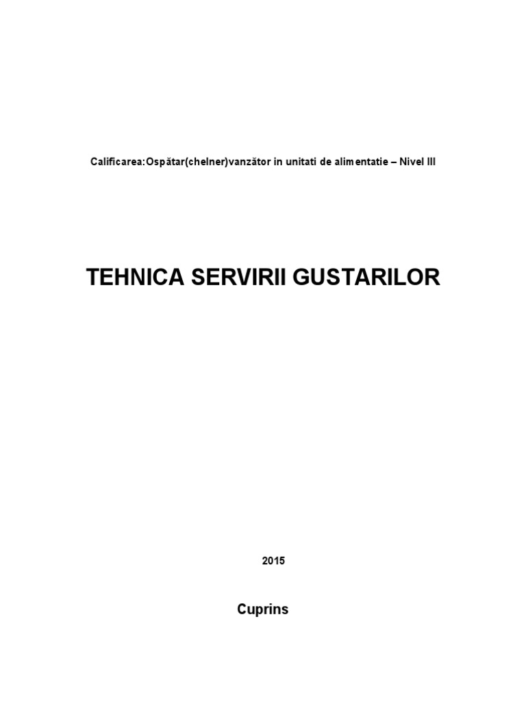 TEHNICA SERVIRII GUSTARILOR