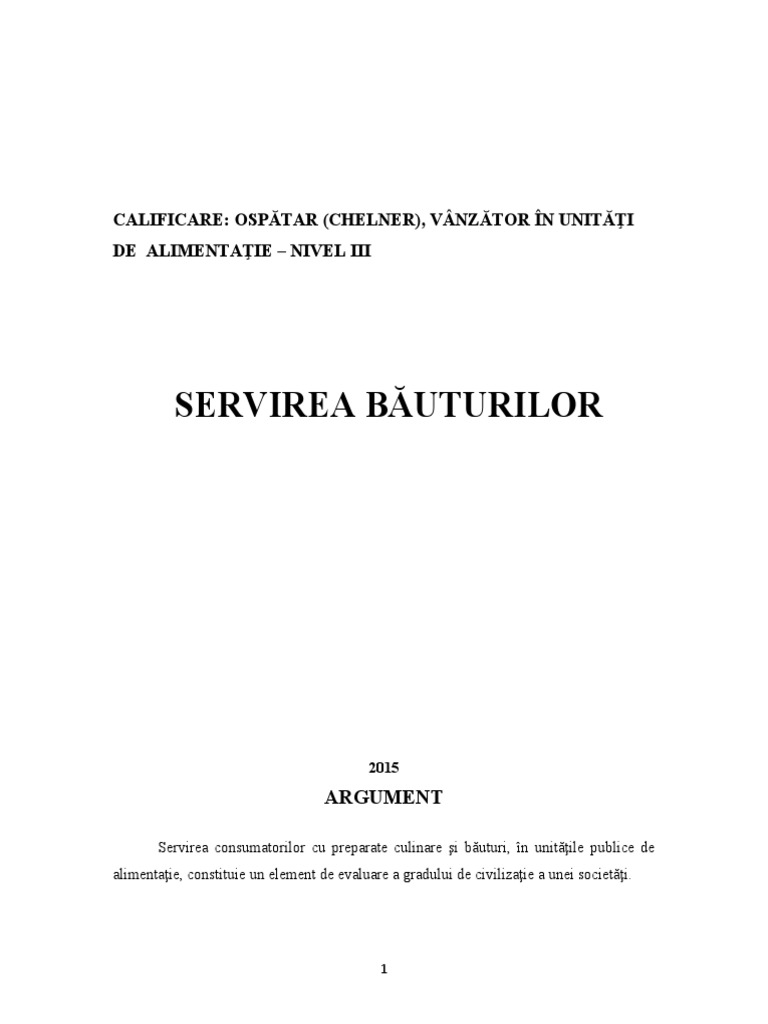 1.2. Servirea băuturilor.......................................................................................9