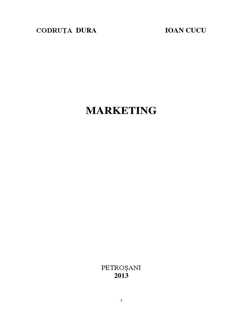 Cucu Ioan, Dura Codruţa, Marketing, Editura Focus, 2003