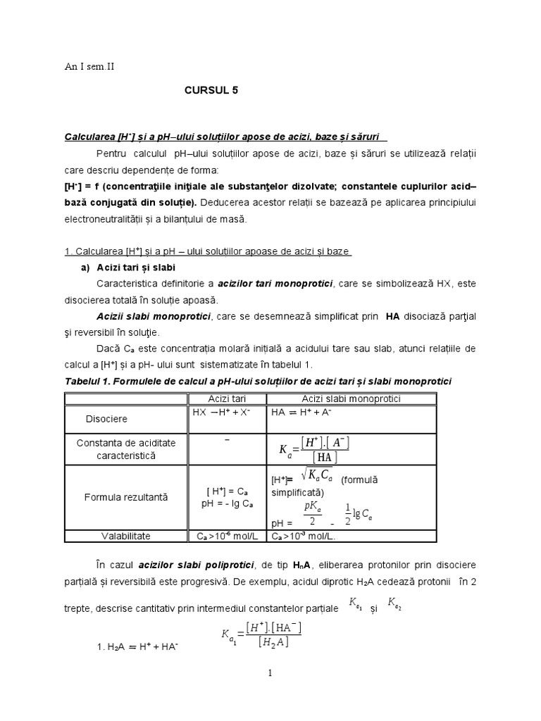 Relația uzuală de calcul a pH-ului soluțiilor apoase ale acestor acizi, operațională în