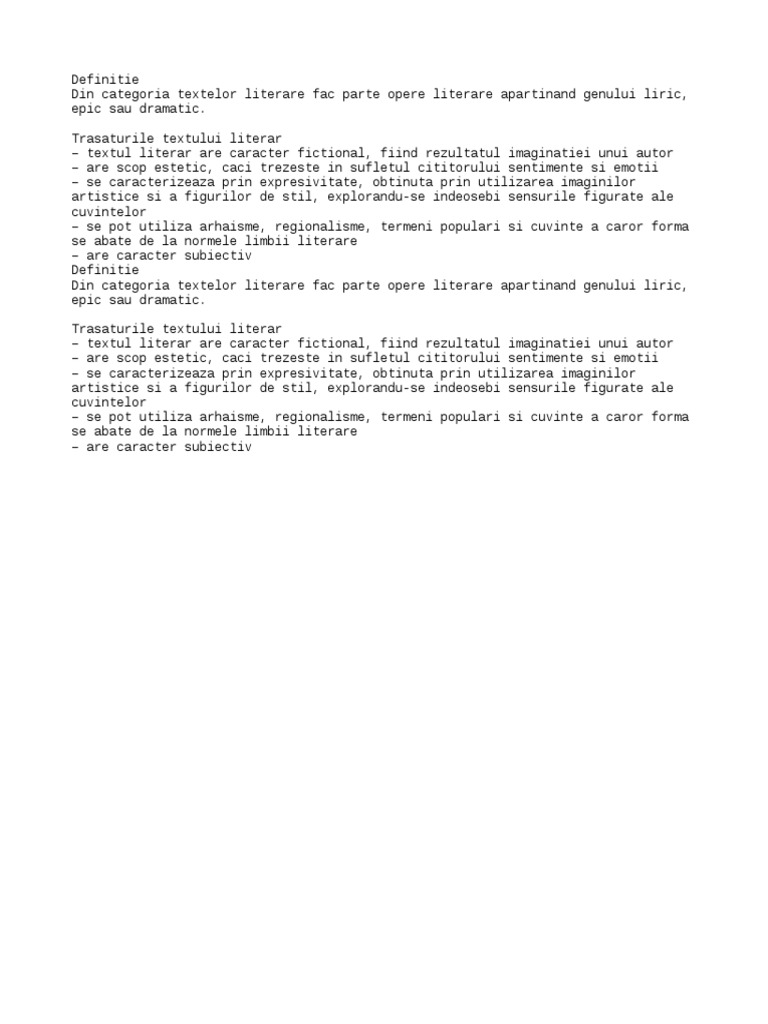 – textul literar are caracter fictional, fiind rezultatul imaginatiei unui autor
