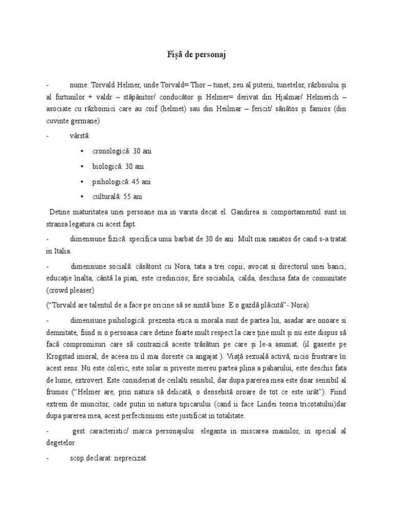 - nume: Torvald Helmer, unde Torvald= Thor – tunet; zeu al puterii, tunetelor, războiului și