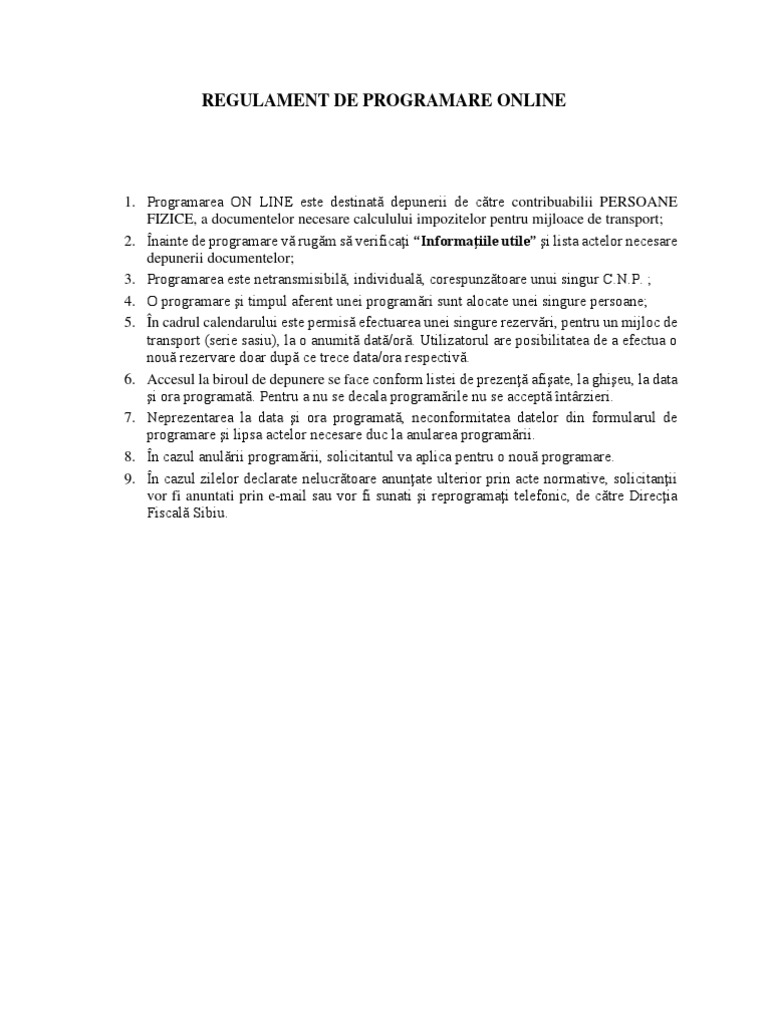 2. Înainte de programare vă rugăm să verificaţi “Informaţiile utile” şi lista actelor necesare