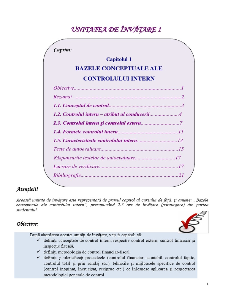 conceptuale ale controlului intern”, presupunând 2-3 ore de învăţare (parcurgere) din partea