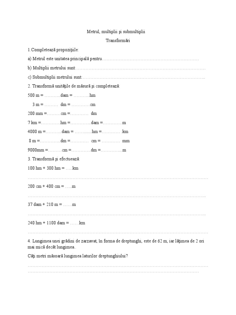 c) Submultiplii metrului sunt:……………………………………………………………………..