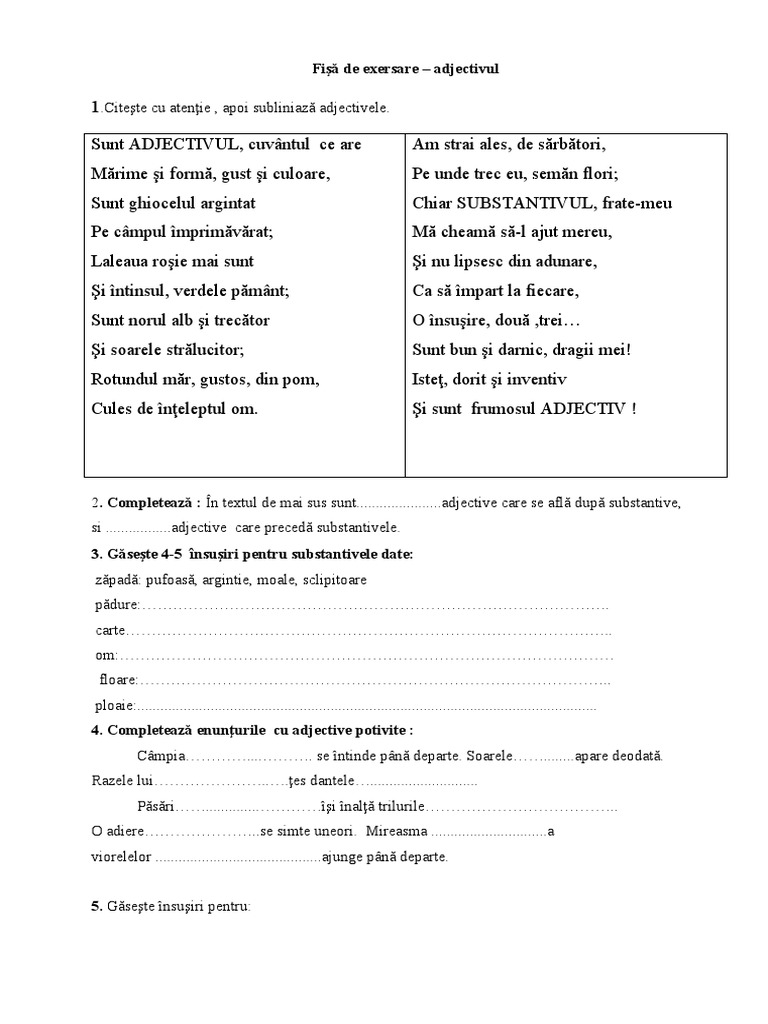 [Link]şte cu atenţie , apoi subliniază adjectivele.