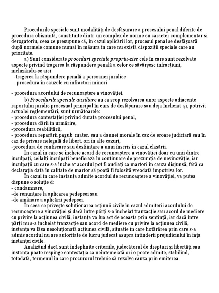 Procedurile speciale sunt modalități de desfășurare a procesului penal diferite de