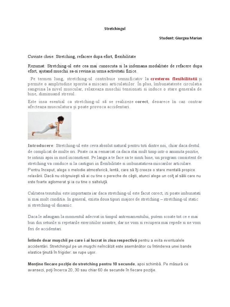 Cuvinte cheie: Stretching, refacere dupa efort, flexibilitate