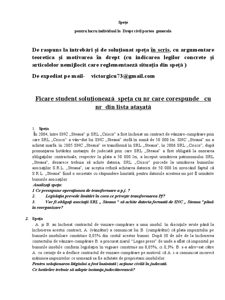 Ficare student soluționează speța cu nr care corespunde cu