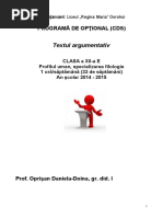 argumentativ apare în clasa a IX-a și este sporadic reluată până în clasa a XII-a. De