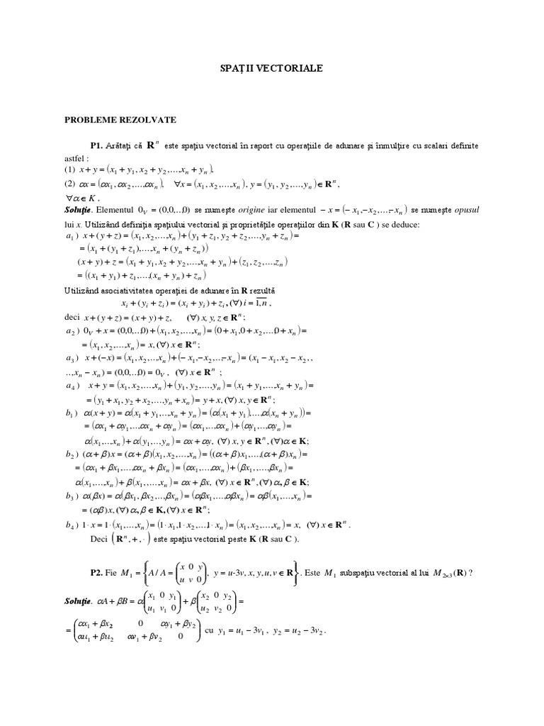 P1. Arătaţi că R n este spaţiu vectorial în raport cu operaţiile de adunare şi înmulţire cu scalari definite