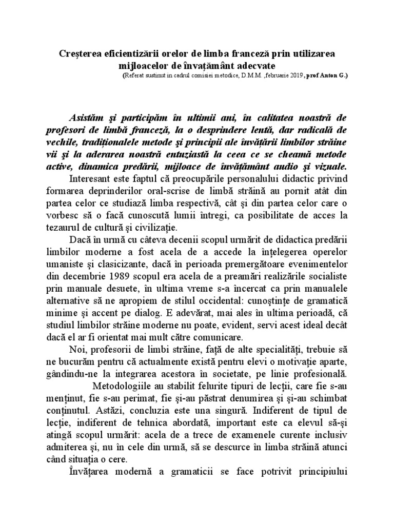 (Referat sustinut in cadrul comisiei metodice, D.M.M. ,februarie 2019, prof Anton G.)