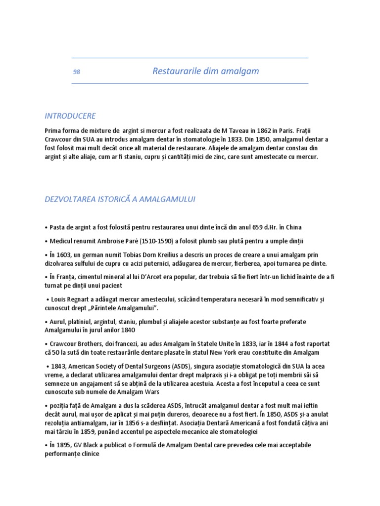 amalgam, deoarece rezultatele anterioare au fost preparate mai conservatoare pentru dinți