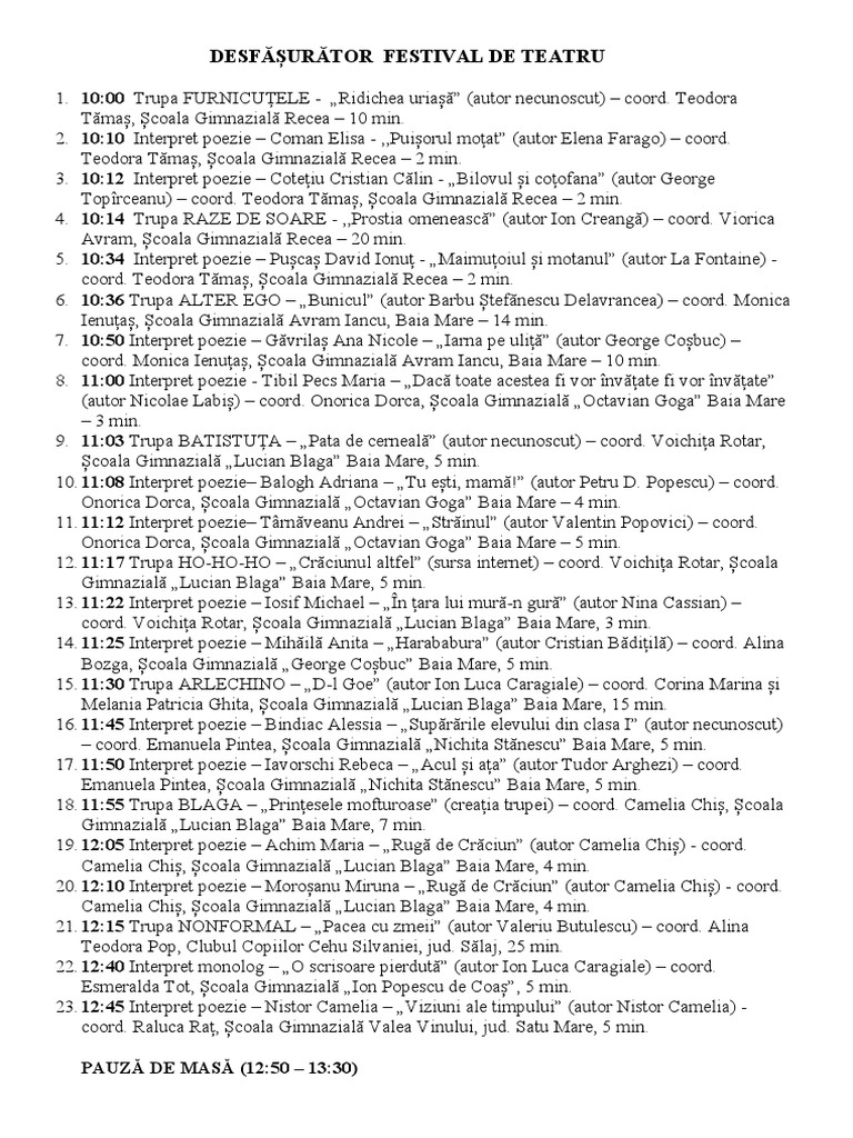 27. 14:10 Interpret monolog - Tican Patricia – „Dragă jurnalule”(autor necunoscut) - coord.