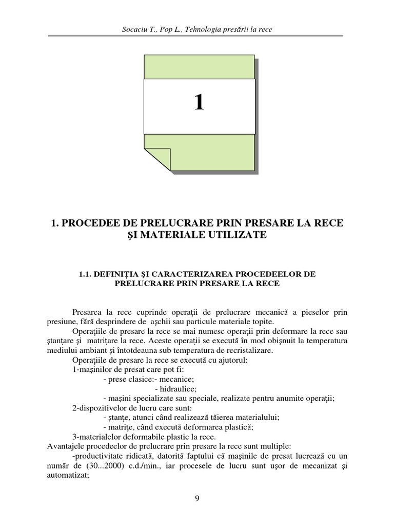1. PROCEDEE DE PRELUCRARE PRIN PRESARE LA RECE