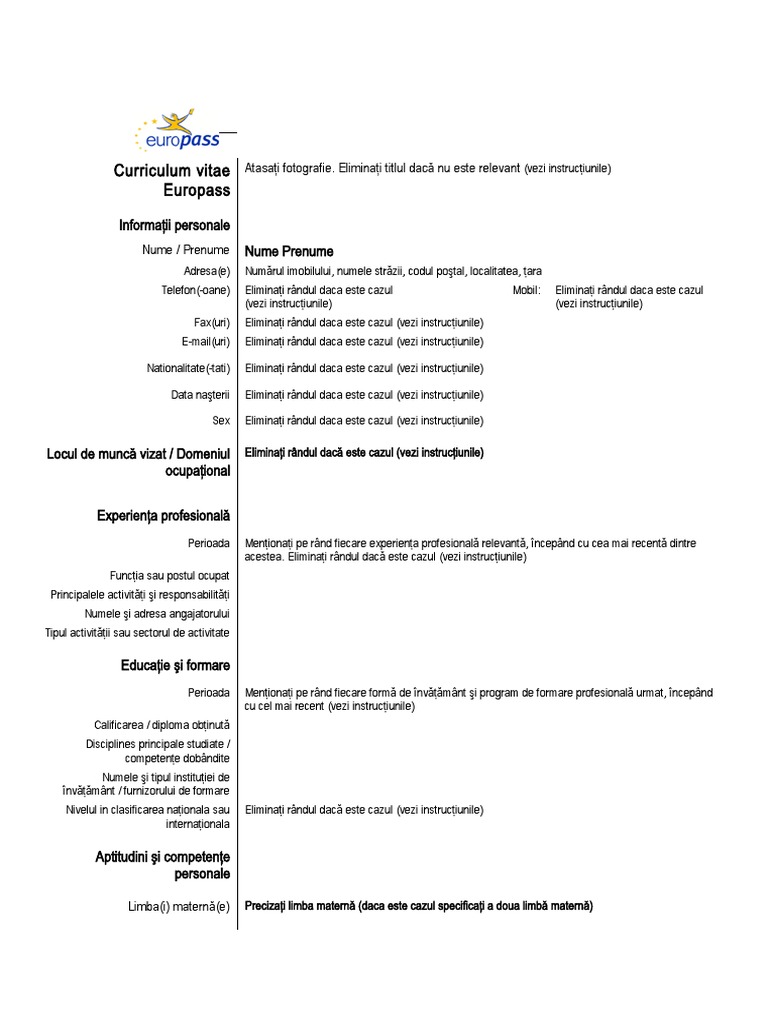 Curriculum vitae Atasaţi fotografie.