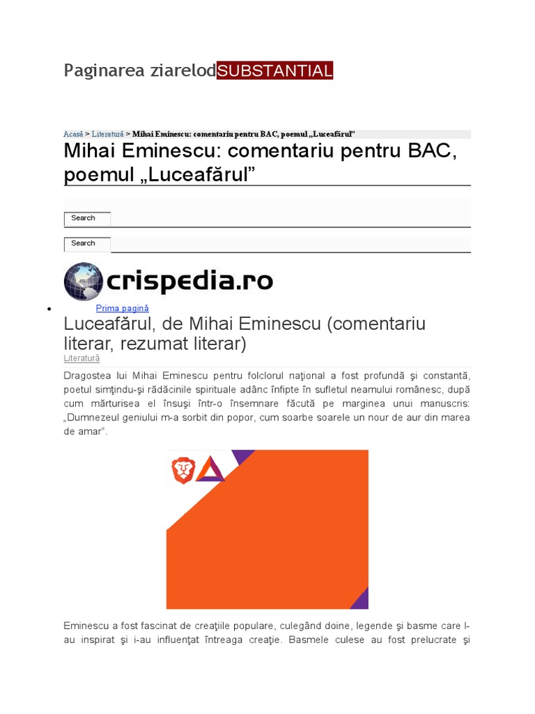 Mihai Eminescu: comentariu pentru BAC,