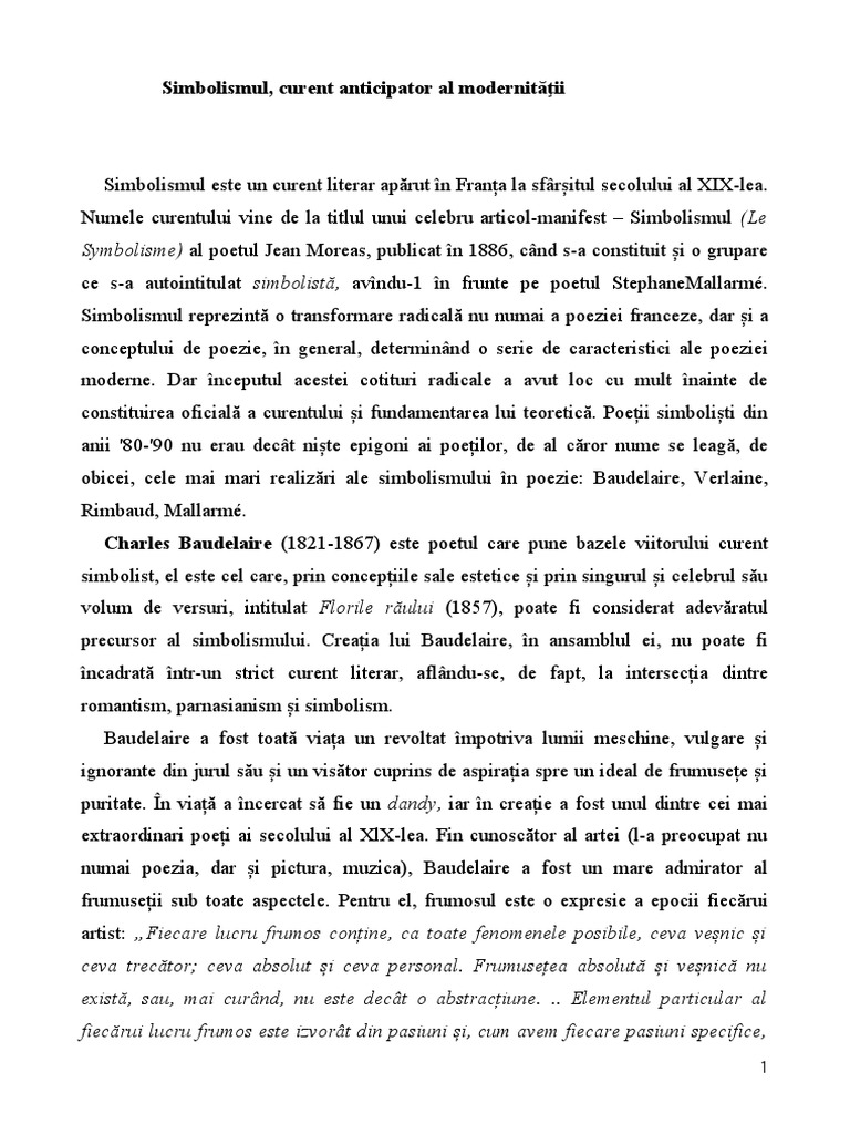 simbolismului, ca și Arta poetică a lui Verlaine, poate fi considerat un rezultat al