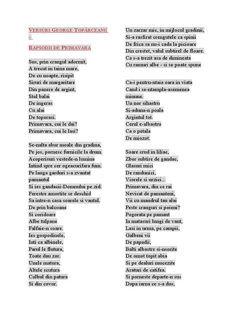 VERSURI GEORGE TOPÂRCEANU Un zarzar mic, in mijlocul gradinii,