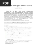 RAPORT DE AUTOEVALUARE ASUPRA ACTIVITATII DESFASURATE